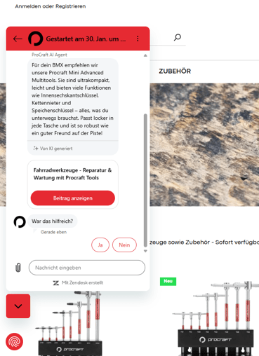 Begeistern Sie Ihre Kunden mit sofortigen, präzisen Antworten – rund um die Uhr, ganz ohne zusätzliche Personalkosten. Unser neuer AI‑Chatbot von Zendesk kombiniert leistungsstarke KI‑Modelle mit intelligentem Shop‑Sitemap‑Crawling und liefert so jederzeit verlässliche Informationen zu Produkten, Verfügbarkeiten und häufigen Fragen.